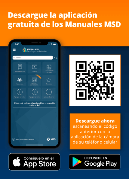 El contenido en los Manuales refleja la información y la práctica médica en los Estados Unidos. Fuera de los Estados Unidos, las recomendaciones clínicas, los estándares prácticos y la opinión de los profesionales pueden diferir y se aconseja al lector que consulte también fuentes médicas locales. Tenga en cuenta que no todo el contenido que se ve en inglés está disponible en otro idioma en particular.